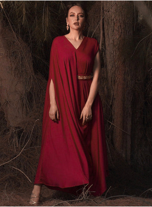 Ecstacy FashionRed shade drape style kaftan with gold embellished belt Product ID : 37082 Item fabric : adora crepe ...