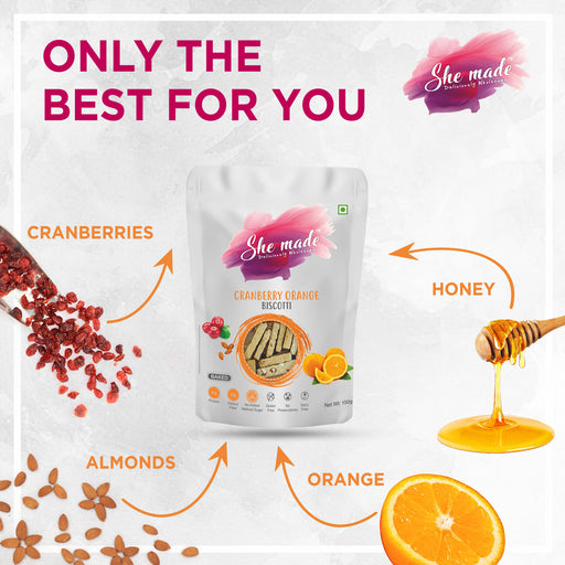 View full detailsShe Made Cranberry Orange Biscotti 150g