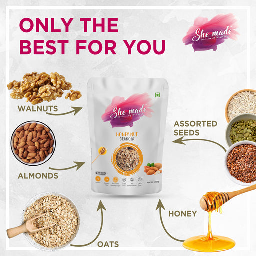 Rootz OrganicsSay hello to your new favorite snack with Honey Nut Granola from She Made Foods. BEST WAY TO START YOUR DAY Packed with rolled oats, honey, walnu...