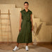 This luxurious olive green linen dress is your one-stop shop for effortless elegance. The versatile button-down design offers a touch of sophistication, while the detachable belt creates a flattering silhouette. Feeling breezy? Ditch the belt and wear it as a flowy sleeveless duster. Made from breathable linen, this dress is perfect for layering and transitions seamlessly from day to night.