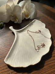 Solid-colored trinket tray offers a stylish way to store jewelry or add a decorative touch to any space.