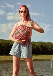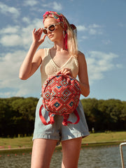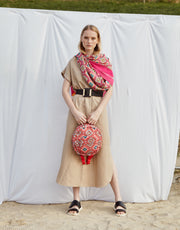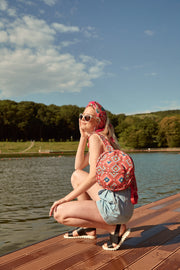 Backpack  ROSSI is a designer`s pink fantasy. Stylish and bright for any outfit. Crafted from 100% cotton and can be worn for going to the beach, school, shopping, pilates, yoga, or whatever you do! Perfect gift idea.