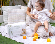 Bloomies Hypoallergenic Premium Baby Diaper pants 40pcs/pack, white, made gentle and safe with hypoallergenic, Dermatologist tested materials. Crafted from 100% biodegradable bamboo. Soft, breathable, Latex & Chlorine-free with a convenient wetness indicator.