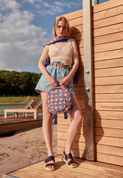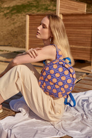 Backpack SUNNY with sea-inspired textile pattern with beautiful sunny orange and sea blue colors. Crafted from 100% cotton can be worn for going to the beach, school, shopping, Pilates, yoga, or whatever you do!