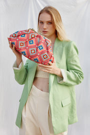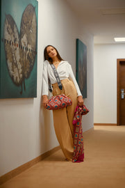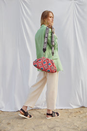 A small cotton bag ROSSI is a designer's pink fantasy. Stylish and bright for any outfit. Can be worn for any occasion. The long printed shoulder stripe of the bag will allow you to carry it on your shoulder. Perfect gift idea.