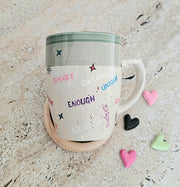 Wrap your hands around more than just a warm drink—wrap them around a daily dose of self-love and encouragement. This hand-painted ceramic mug features the heartfelt affirmation: