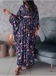 Blue gardenia printed kaftan with mirror embellished, inside tieable Product ID : 36585