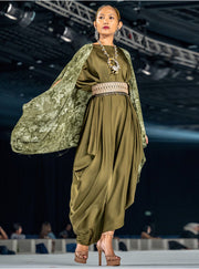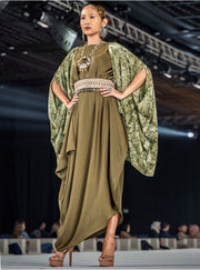 Moss shaded printed cape, dress and belt Product ID : 45339