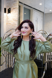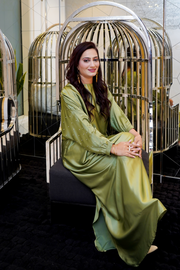 This gorgeous silk maxi dress featuring pearls and sequences on the cuffed sleeves comes with a beautiful long belt to elevate the look. Product Type: Silk Care Instruction: Dry clean only.