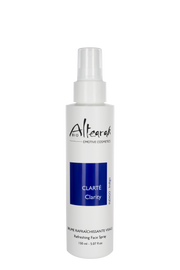 The CLARITY Refreshing Face Spray hydrates, refreshes, and plumps the skin. This light mist soothes facial features, restores freshness, and brings comfort to the skin. In a single gesture, the tensions of the face are relaxed, and hydration is restored. Certified organic, natural and cruelty-free.