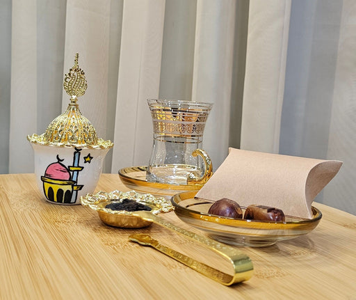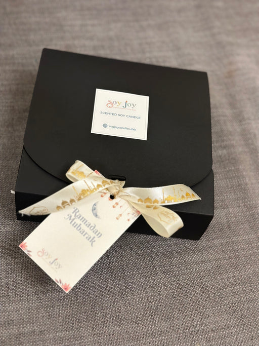 The crescent shaped soy candle paired with an Islamic themed bookmark for an aromatic, budget friendly gift option. Box size 16cm x 16 cm Black gif...