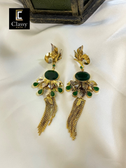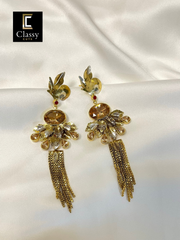 These adorable dangling earrings will draw attention and hearts wherever you go. These earrings radiate femininity and daintiness with their exquisite gold finish that perfectly matches the delicate stones.