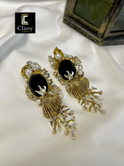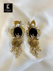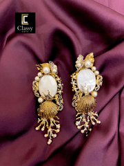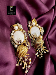 Dive into oceanic allure with our stunning handmade blue stone earrings, adorned by a lustrous gold frame that captures the essence of the sea. These long earrings evoke the serenity of ocean waves, featuring a mesmerizing shell shape below the azure centerpiece. Elevate your style with a touch of maritime elegance and timeless sophistication.