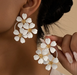 These Three Camellia Flower Earrings will bring a unique, sophisticated, and chic look to any outfit. Featuring three exquisitely crafted camellia blooms, these earrings offer an elegant design perfect for any occasion. With their delicate and lustrous finish, they make a statement like no other.