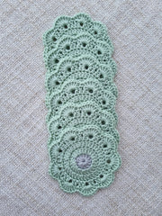 Use these pretty crocheted coasters to protect your table tops and enhance the room's décor. Perfect for placing hot or cold drinks on, these can be ordered in other colours as well. Customized orders will require 4-7 days to be fulfilled. You can let me know in the 'Comments' box what colours you would like and I will revert with the possibilities. Combine with the Sage Flower Potli (sold separately) to make an ideal gift.