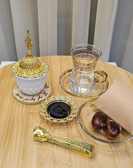 This elegant Bakhoor Burner Set is the perfect addition to your Eid celebrations. It includes a beautifully crafted wooden burner saucer, designed ...