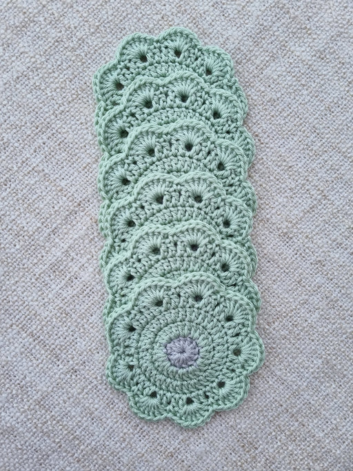 A set of 4 exquisitely crafted coasters in a charming olive green hue, these crocheted beauties not only add a touch of elegance to your table set...