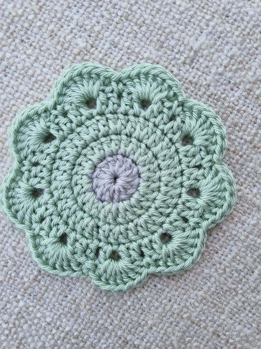 A set of 4 captivating coasters in a serene sea green hue. Handcrafted with intricate crochet work, these coasters offer both charm and practic...
