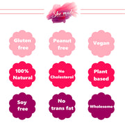 At She Made Foods, we take pride in working towards and sustaining a healthier tomorrow. Made using 100% natural ingredients and flavours, all our products are free from preservatives, refined sugar, artificial flavours and colours. We ensure our nutritious products are clean-label, making them deliciously wholesome for kids and adults alike.