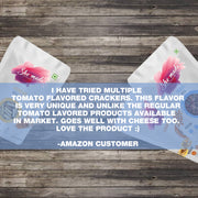 Our crunchy cracker biscuits are packed with the nutrition of pure ingredients. Almond meal flour in the crackers makes them fibre dense and gives them a light, flaky texture. Tomatoes are known to be a good source of plant protein, making these crackers completely diet-friendly. No cholesterol and zero trans-fat makes them a healthier choice over oily and fried snacks to fulfil your savoury kick. The baked crackers are also plant-based, vegan and free from any allergens such as gluten, peanut, soy, and wheat.