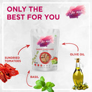All it takes to lighten up your day is this inviting combination of sundried tomato and basil. Made using almond meal flour, our baked crackers have a wholesome crunch. The tanginess from tomatoes and earthiness from basil pack oodles of flavour in every bite. The ingredients have been carefully curated to make the crackers a healthy and low-calorie treat.