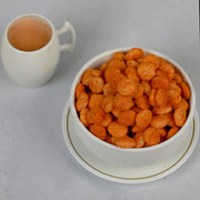 Sweet, tangy, salty - experience an explosion of flavours as you munch on these delicious, gluten-free puffs. Fiber-rich millet puffs are flavoured with tomato seasoning and roasted to make this zesty, healthy snack. Raj Uphaar's tomato jowar puffs are a fiesta for your palate - and your fitness goals!
