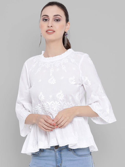 T' Naaz - Naaz TabassumAdd a dash of sophistication to your look in this ruffle-hemmed blouse that furthers the charm with embroidered top and frilly finishes of sleeves
