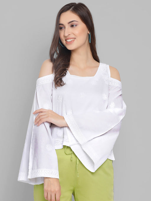 T' Naaz - Naaz TabassumA Cold-shoulder cut-outs keep things breezy in this easy going long-sleeve top, lace at the hem of bell sleeve and neckline, beautifully balances t...