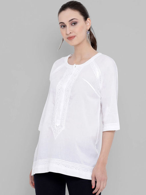 T' Naaz - Naaz TabassumAn embroidered neckline cotton blouse exudes carefree innocence and casual charm, the style further enhances this idea with a loose airy silhouette...