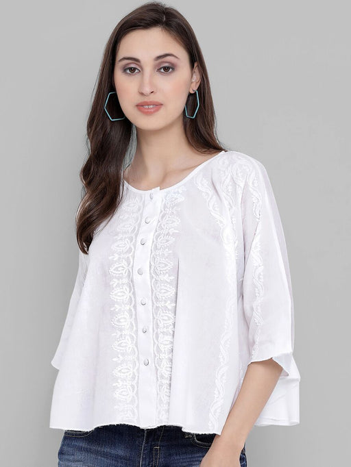 T' Naaz - Naaz TabassumA stiff placket collar and embroidery flowing downwards from the shoulder at the top of the shirt adds drama to this easy-going button-down crisp c...