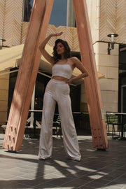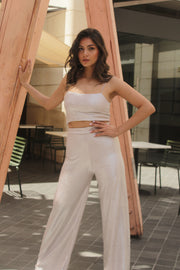 Wide-leg pants with stretchy waist , Spaghetti-Strap Crop Top