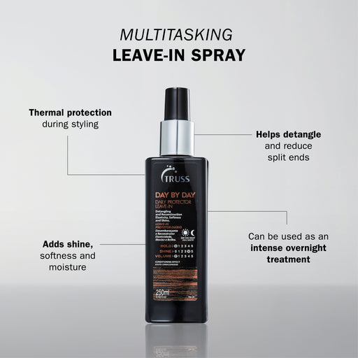Truss ProfessionalDaily leave-in protector.Day-by-day is a highly moisturizing leave-in protector and detangling spray. It facilitates blowouts while providing therm...