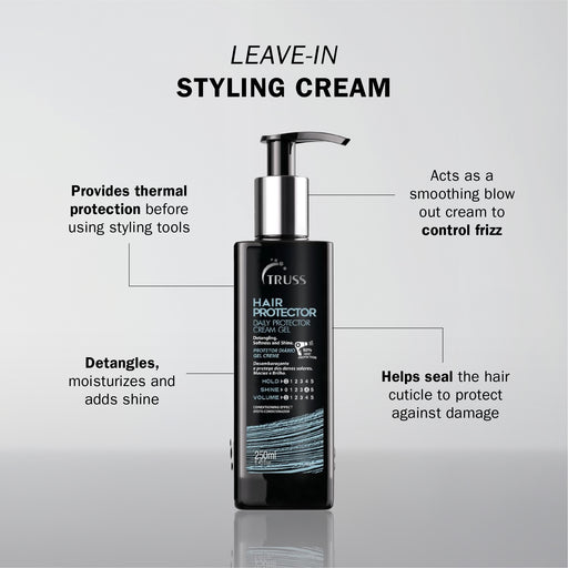 Truss ProfessionalLeave-in with UV protection. Detangling and thermal protector. Reduces frizz and provides shine and softness.