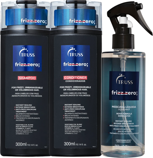 Truss ProfessionalFrizz zero Shampoo & Conditioner Helps in controlling frizz and dry hair leaving it shinier and like silk to touch. Frizz zero SprayDetangles l...