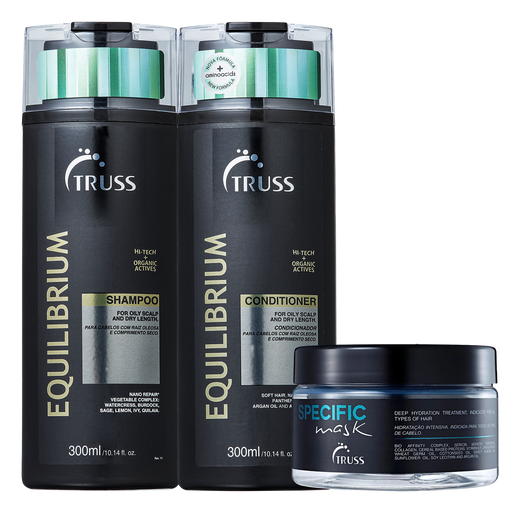 Truss ProfessionalEquilibrium Shampoo & Conditioner Removes excess oil from the scalp, soothing and perfect for scalp disorders Specific Mask Works for all hair ...