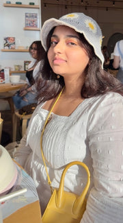 Stay stylish and sustainable with our Daisy Hat. Handmade with love and 100% cotton, it's breathable, non-toxic, and washable. Customize the color to fit your personal style, all while reducing your environmental impact. Available in sizes S, M, and L to fit any head circumference.