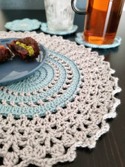 The delicate lacy pattern makes this crocheted placemat a much desired accessory that will add softness and colour to your décor.