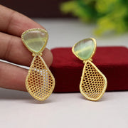 Earring Length CM x Width CMMetal Brass With Good Quality Gold PlatedColor Pista Green Stone Glass StoneGross Weight GramsPackage Content Pair Of EarringsBack Finding Post With Friction Back x Earring Style DropCare Instruction Avoid Heat Chemicals Like Perfume Deo Alcohol Etc Clean With Dry Cotton Cloth Pack In An Air Tight Container After Use