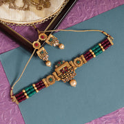 Rani & Green Color Choker Matte Gold Necklace Set (TPLN467RNIGRN) - Rani & Green