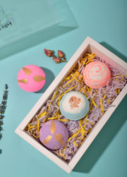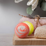 A delightful round bath bomb with a swirled design, releasing fragrant scents and fizzy bubbles for a relaxing bath experience. 4 bath bombs in each box & each bomb weighs 65 grams. Indulge in luxury with our sumptuous round bath bombs featuring a mesmerizing swirled design. Immerse yourself in the fragrant scents and sparkling bubbles for a truly rejuvenating bath experience. Each box contains 4 bath bombs, each weighing 65 grams, providing a generous amount of pampering for you or your loved ones. Elevate your self-care routine with our exquisite bath bombs.