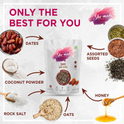 Made with ingredients such as dates, pumpkin seeds, sesame seeds, coconut powder, chia seeds, flax seeds, and rock salt, our bar bites are perfect for growing kids and adults. The delicious sweet taste of dates with undertones of nutty flavour makes it a perfect treat for everyone.