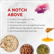 Our breakfast cereal has the protein of a glass of milk and the fiber of one entire apple. Rich is good fats, protein, and fibre, it keeps you energized throughout the day. It contains zero cholesterol and trans-fat to ensure wellness from the inside out.