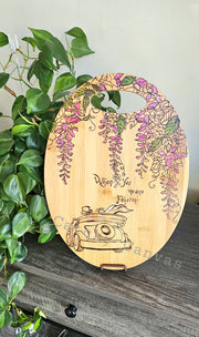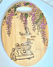 This beautifully crafted wooden board features an intricate wood-burned design of a delicate floral creeper with hit of colours, symbolizing growth, love, and the intertwined journey of two lives. The stunning artwork is complemented by a charming car design, signifying the newlyweds' adventure ahead. Beneath the art, the heartfelt quote "When 'Yes' means forever" captures the essence of eternal commitment, making this piece a perfect gift for newlyweds. Whether displayed in their home or cherished as a keepsake, this personalized board offers a timeless reminder of their love and shared future.